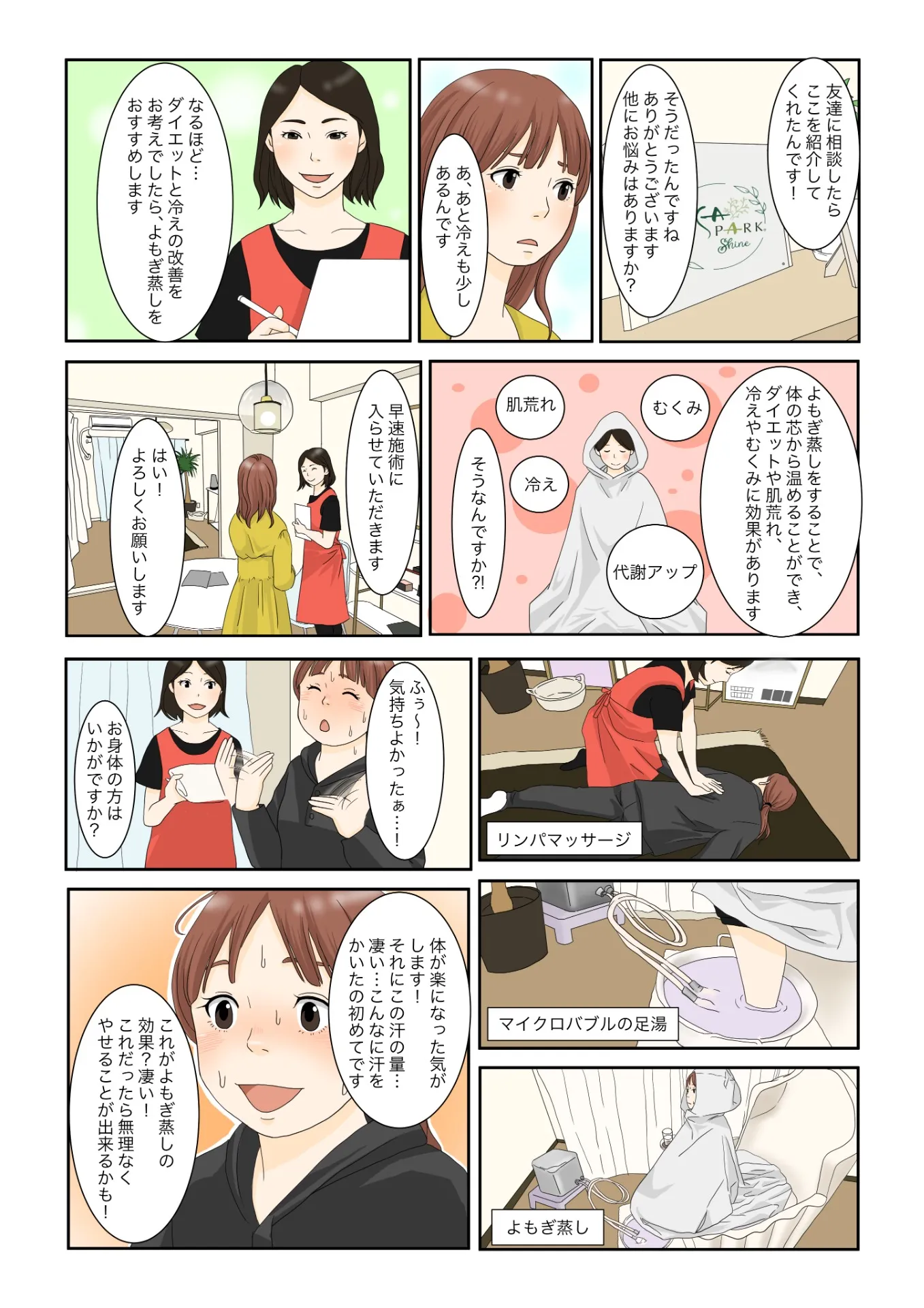 主人公「実はね…YOSAPARK Shineって所でよもぎ蒸しをやってるんだ!」