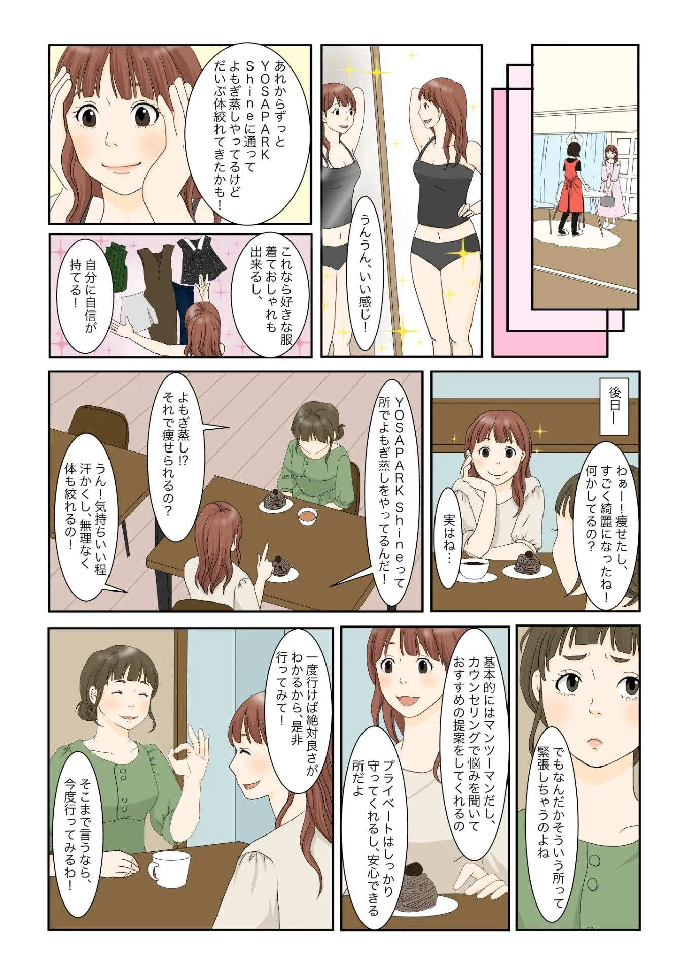 主人公「あれからずっとYOSAPARK Shineに通ってよもぎ蒸しやってるけど、だいぶ体絞れてきたかも!」